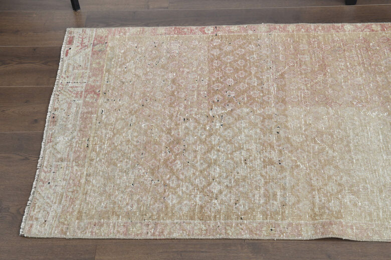 This one-of-a-kind vintage rug is hand-knotted and handwoven in Anatolia, Turkey from a unique wool blend.