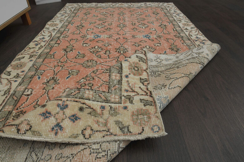 This one-of-a-kind vintage floral area rug is hand-knotted and handwoven in Anatolia, Turkey from a unique wool blend.