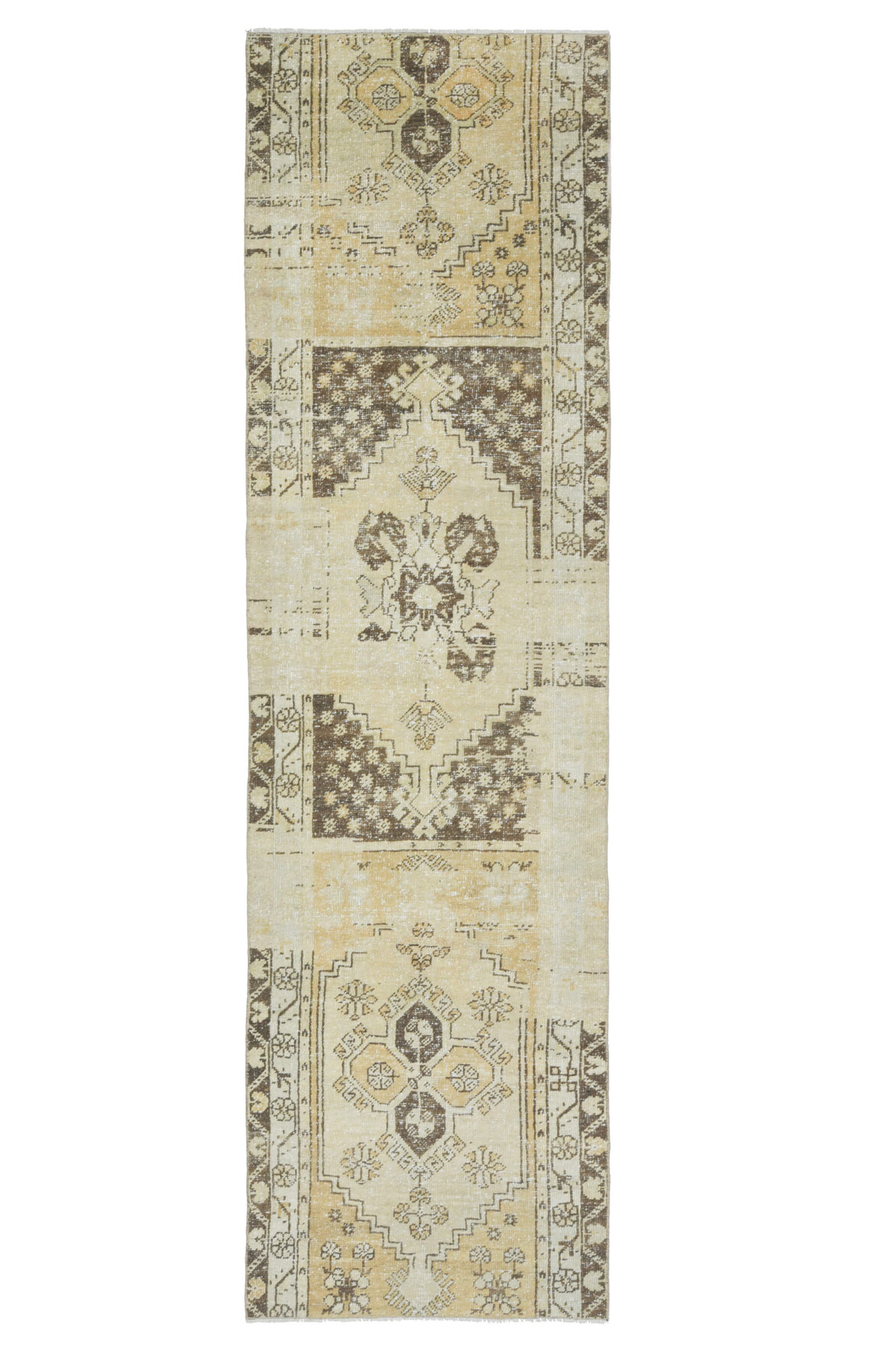This one-of-a-kind vintage runner is hand-knotted and handwoven in Anatolia, Turkey from a unique wool blend.