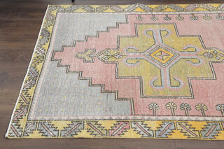 This one-of-a-kind vintage rug is hand-knotted and handwoven in Anatolia, Turkey from a unique wool blend.