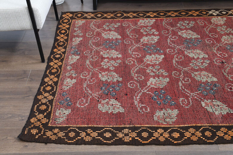 This one-of-a-kind vintage rug is hand-knotted and handwoven in Anatolia, Turkey from a unique wool blend.