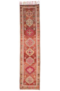 This one-of-a-kind vintage runner rug is hand-knotted and handwoven in Anatolia, Turkey from a unique wool blend.