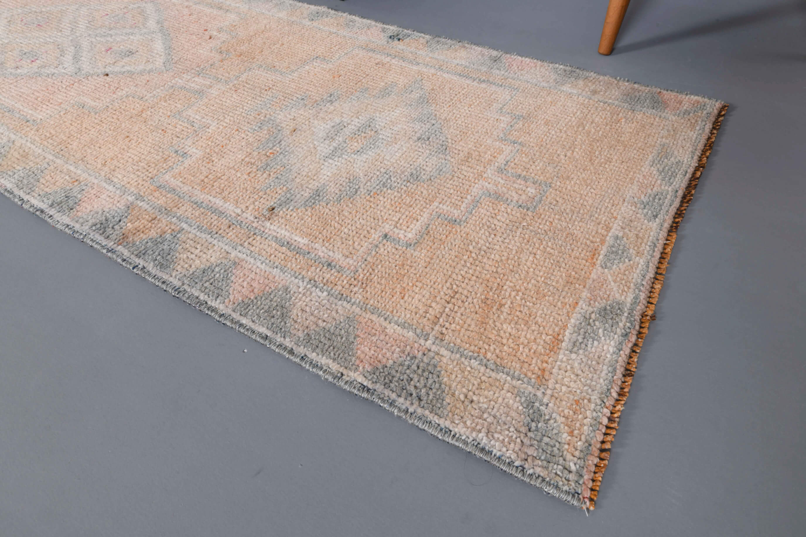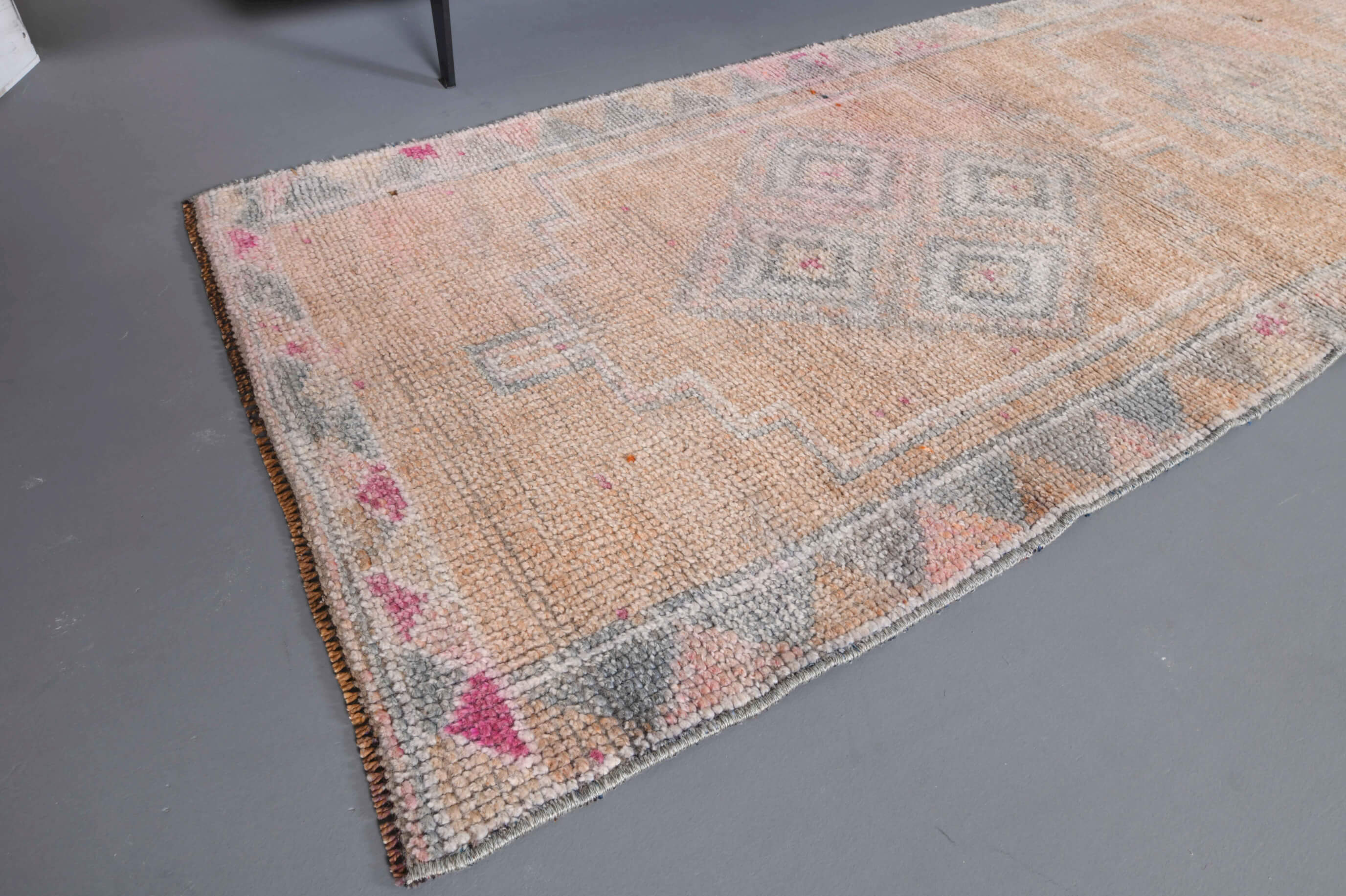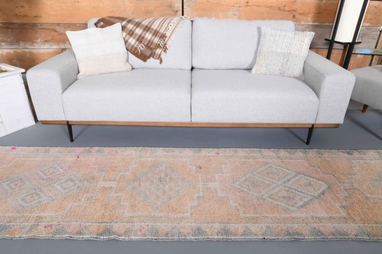 This one-of-a-kind vintage runner rug is hand-knotted and handwoven in Anatolia, Turkey from a unique wool blend.