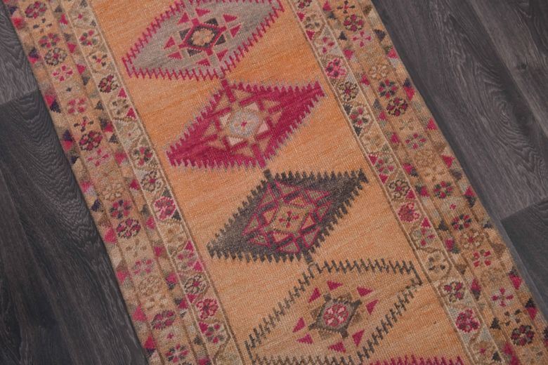 This one-of-a-kind vintage runner rug is hand-knotted and handwoven in Anatolia, Turkey from a unique wool blend.