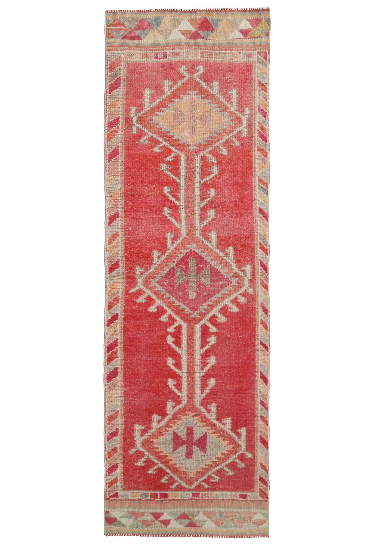 This one-of-a-kind vintage runner rug is hand-knotted and handwoven in Anatolia, Turkey from a unique wool blend.