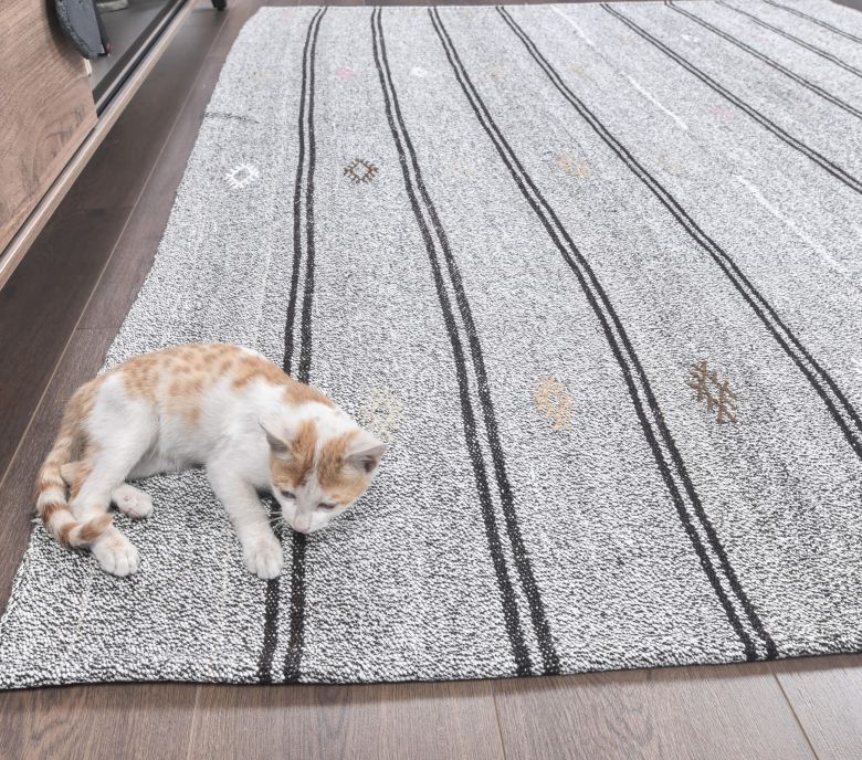 This one-of-a-kind vintage rug is hand-knotted and handwoven in Anatolia, Turkey from a unique wool blend.