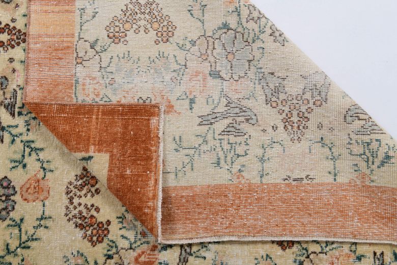 This one-of-a-kind oriental vintage rug is hand-knotted and handwoven in Anatolia, Turkey from a unique wool blend.