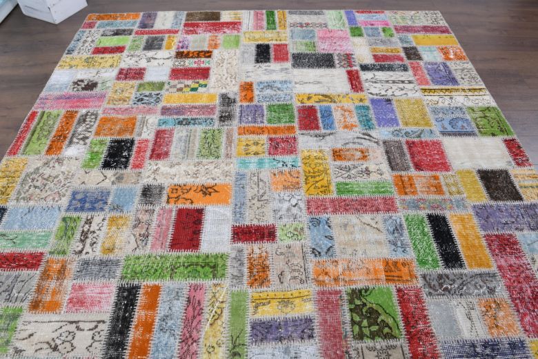 This one-of-a-kind vintage rug is hand-knotted and handwoven in Anatolia, Turkey from a unique wool blend.