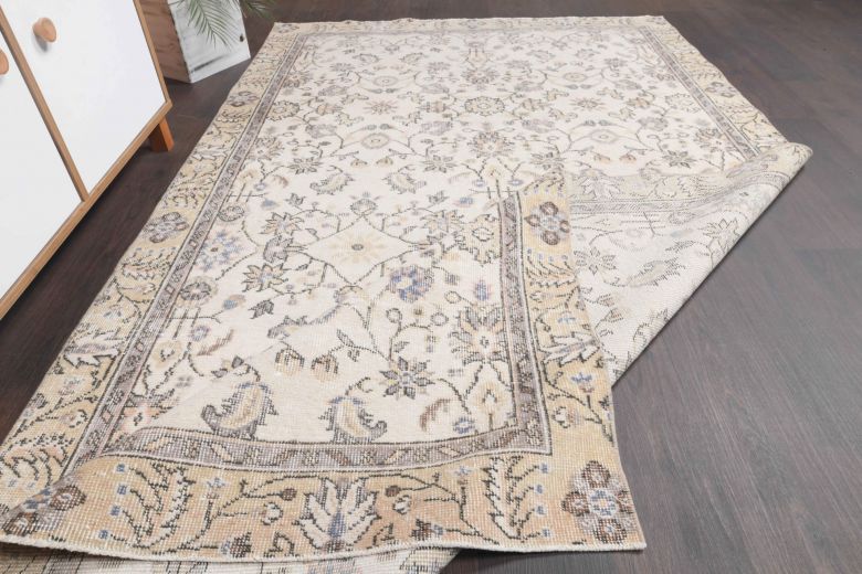 This one-of-a-kind vintage rug is hand-knotted and handwoven in Anatolia, Turkey from a unique wool blend.