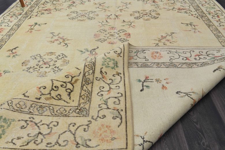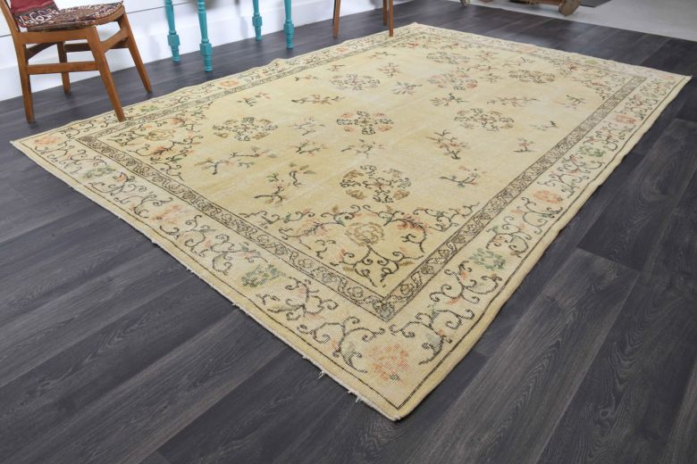 This one-of-a-kind vintage rug is hand-knotted and handwoven in Anatolia, Turkey from a unique wool blend.