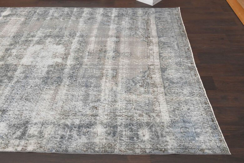 This one-of-a-kind vintage rug is hand-knotted and handwoven in Anatolia, Turkey from a unique wool blend.