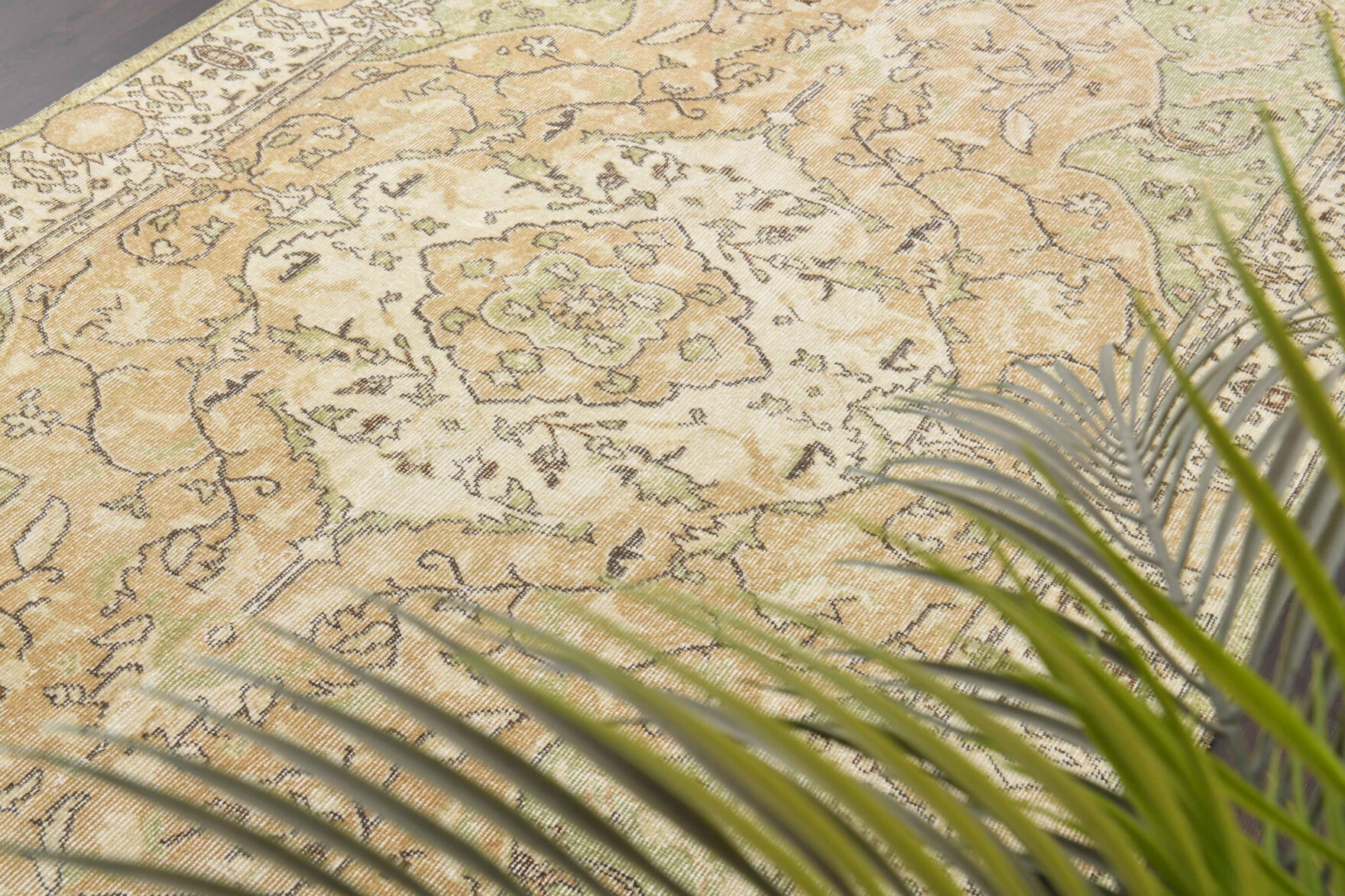 This one-of-a-kind vintage rug is hand-knotted and handwoven in Anatolia, Turkey from a unique wool blend.