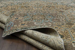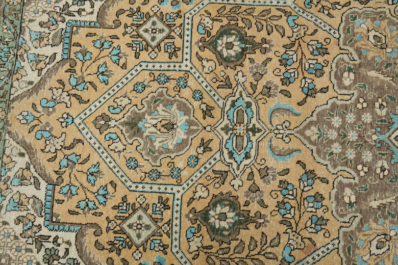 This one-of-a-kind vintage rug is hand-knotted and handwoven in Tabriz, Persian from a unique wool blend.