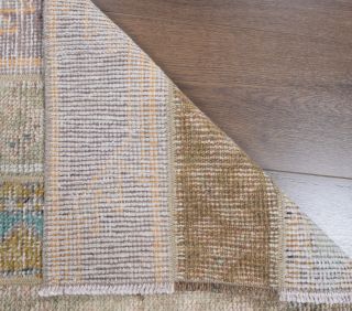 This one-of-a-kind vintage rug is hand-knotted and handwoven in Anatolia, Turkey from a unique wool blend.
