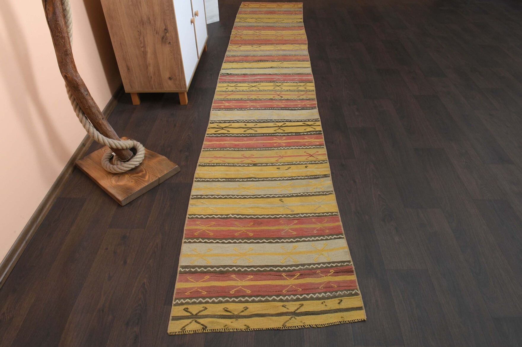 This one-of-a-kind vintage orange rug is hand-knotted and handwoven in Anatolia, Turkey from a unique wool blend.