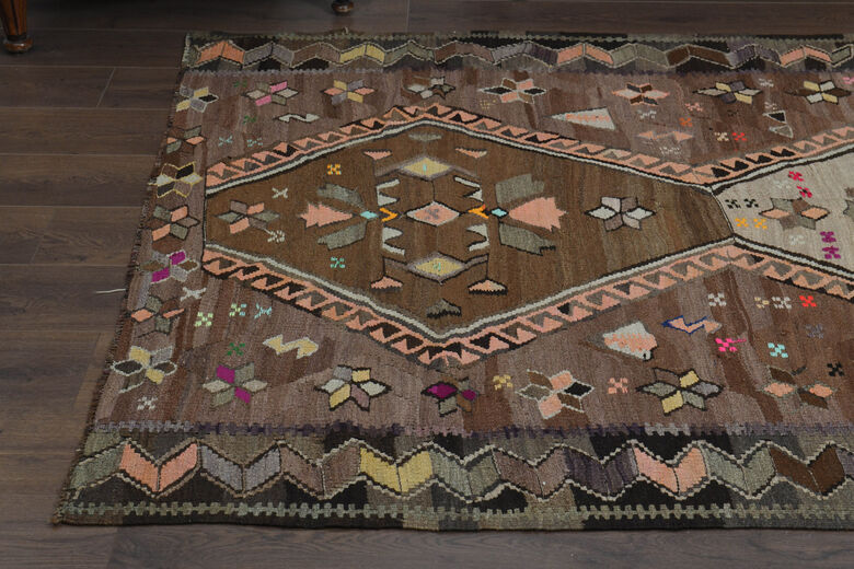 This one-of-a-kind vintage rug is hand-knotted and handwoven in Anatolia, Turkey from a unique wool blend.