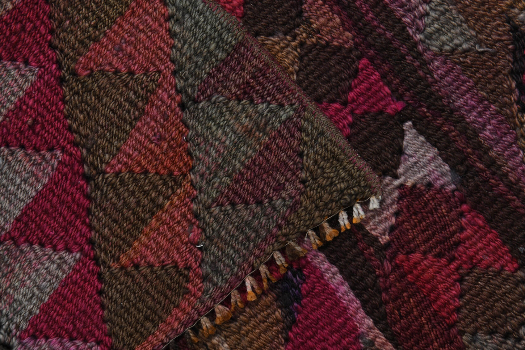 This one-of-a-kind vintage rug is hand-knotted and handwoven in Anatolia, Turkey from a unique wool blend.