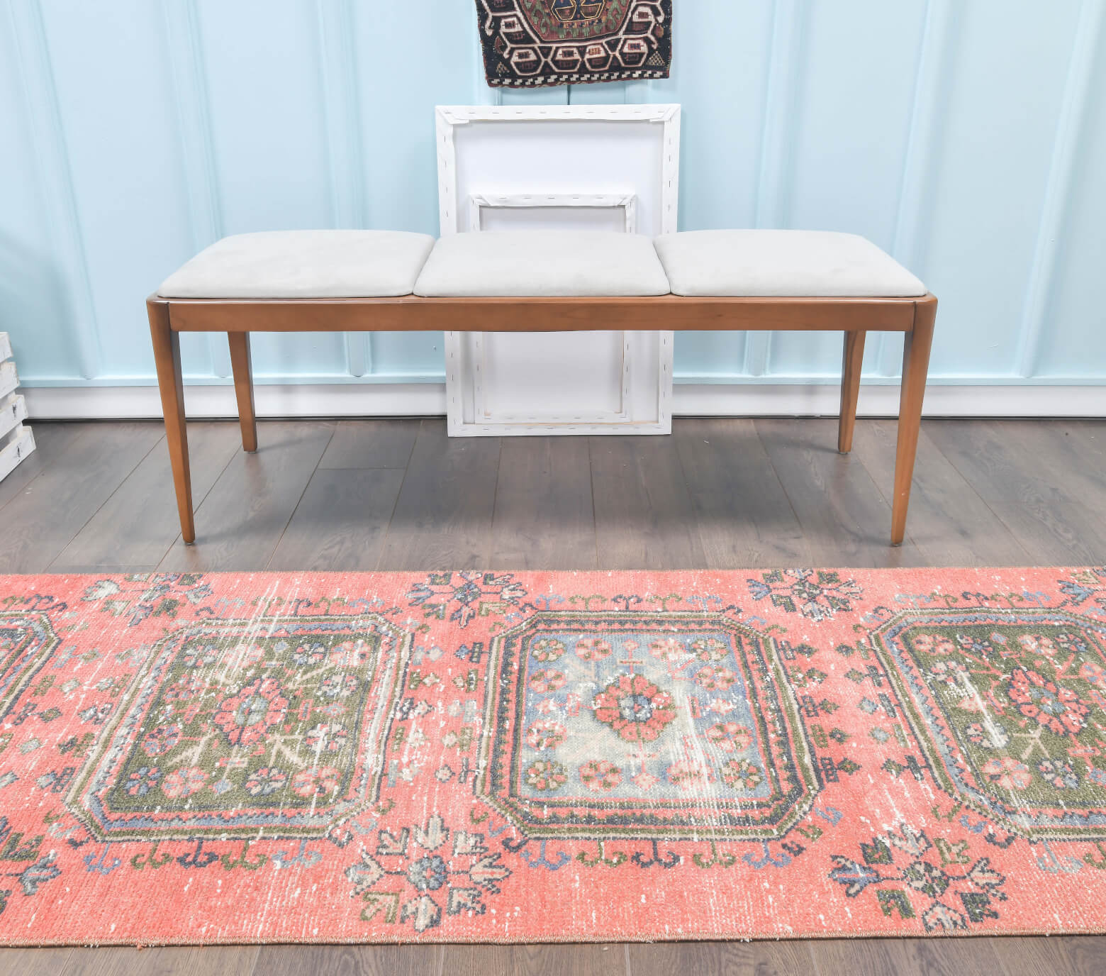 The rugs were originally made by women artisans.