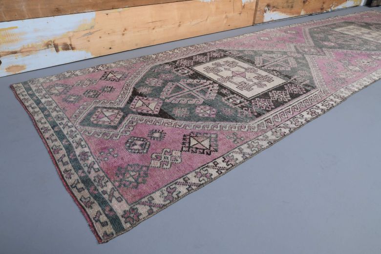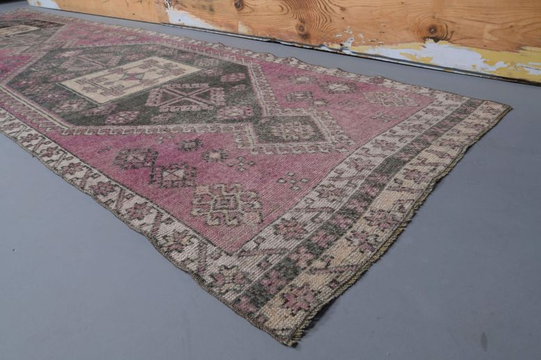 This one-of-a-kind vintage rug is hand-knotted and handwoven in Anatolia, Turkey from a unique wool blend.