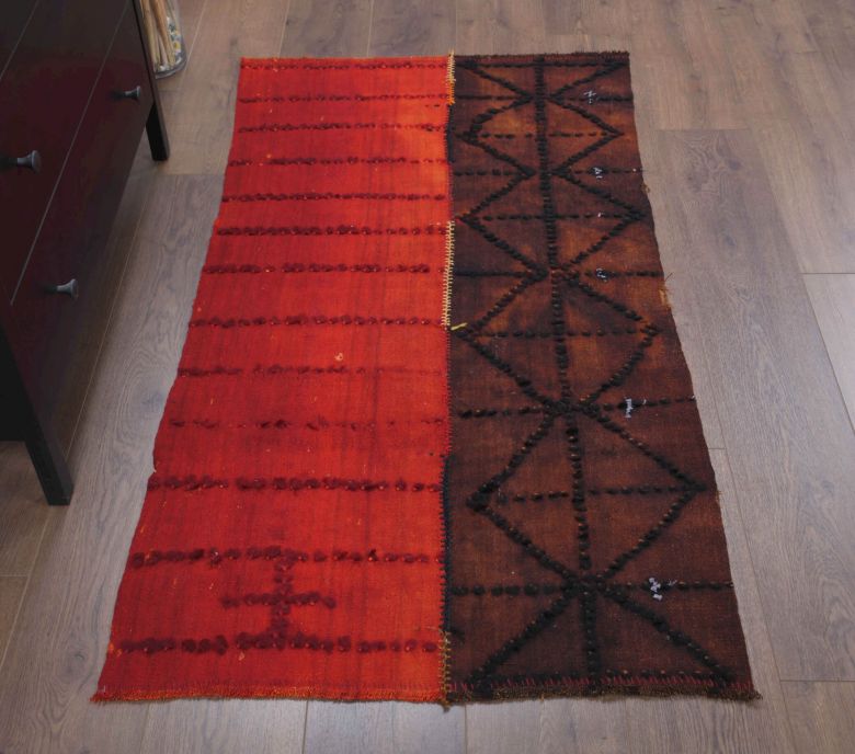 This one-of-a-kind vintage rug is hand-knotted and handwoven in Anatolia, Turkey from a unique wool blend.
