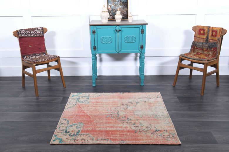 This one-of-a-kind vintage rug is hand-knotted and handwoven in Anatolia, Turkey from a unique wool blend.