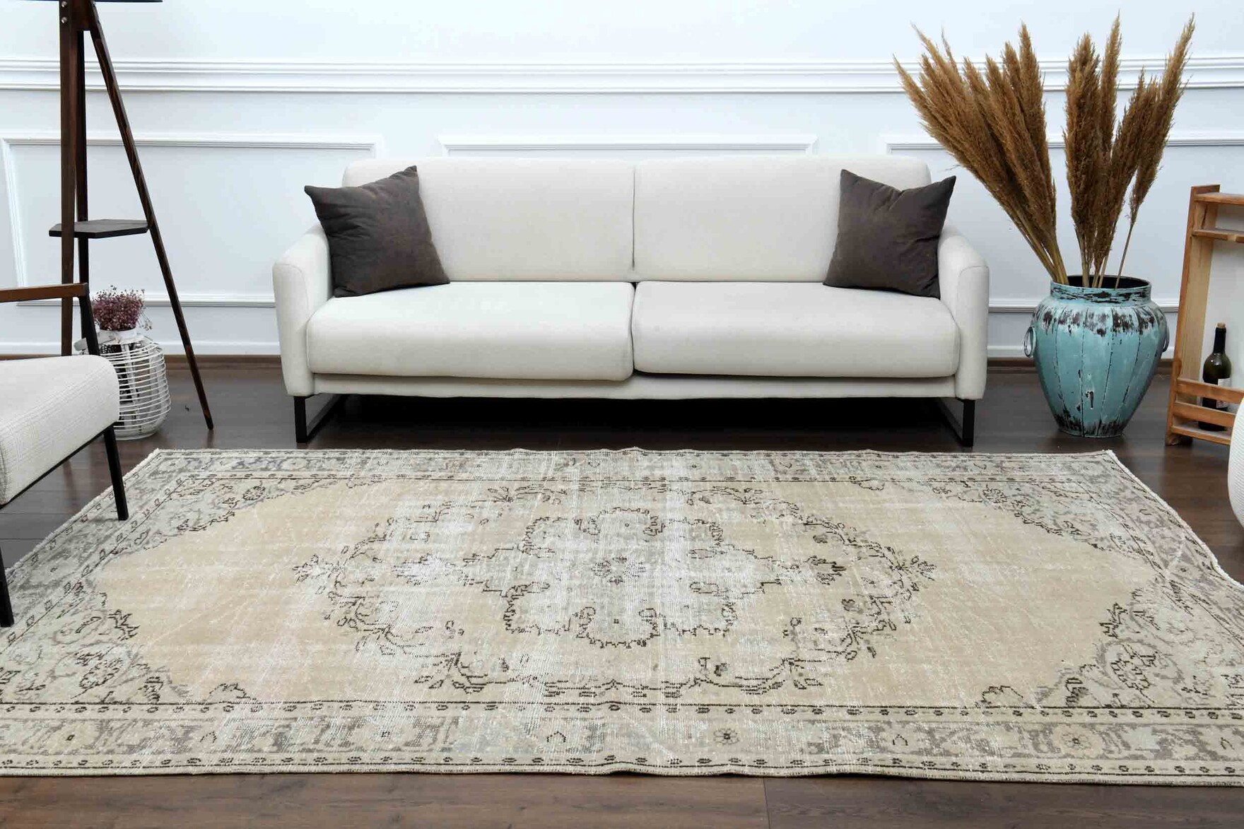 This one-of-a-kind vintage rug is hand-knotted and handwoven in Anatolia, Turkey from a unique wool blend.