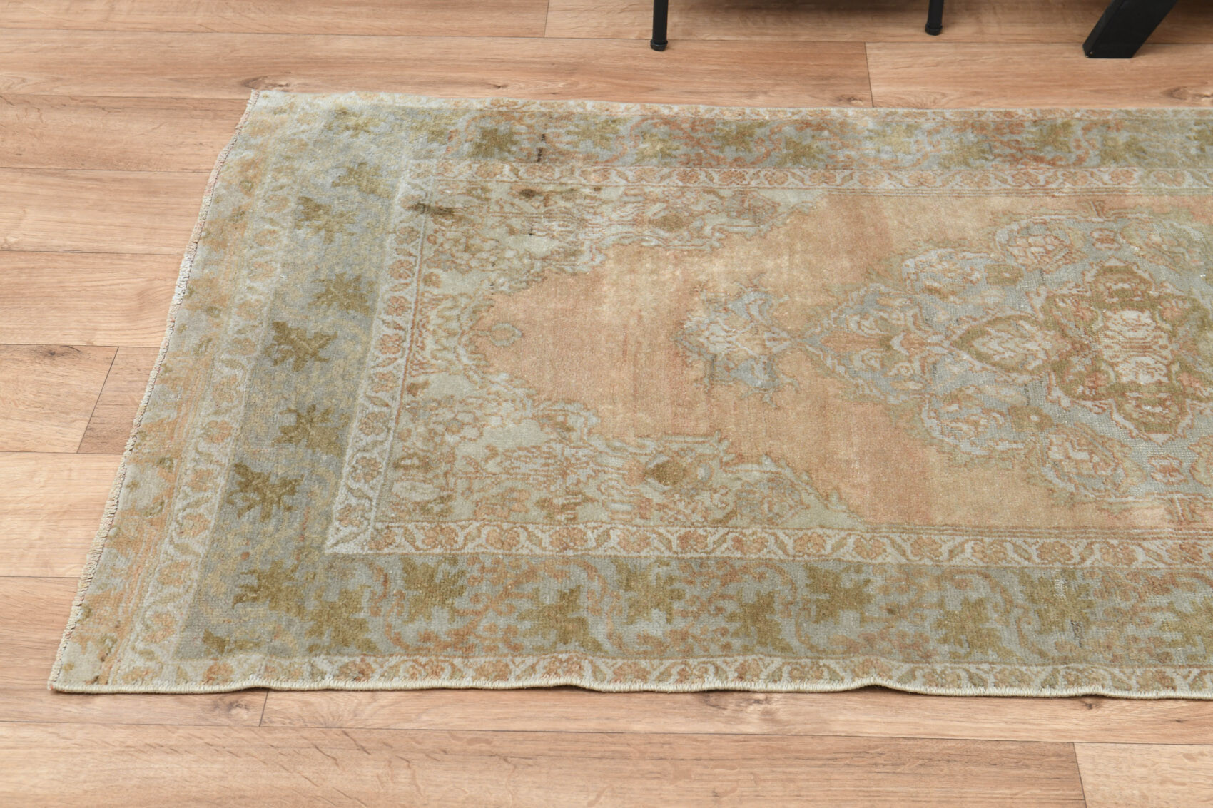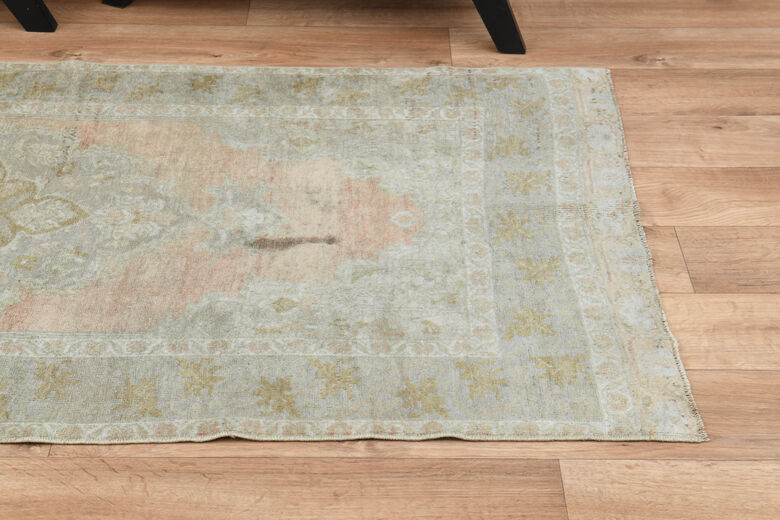 This one-of-a-kind vintage rug is hand-knotted and handwoven in Anatolia, Turkey from a unique wool blend.