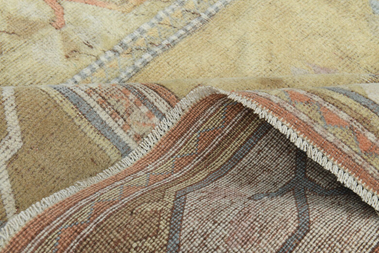 This one-of-a-kind vintage rug is hand-knotted and handwoven in Anatolia, Turkey from a unique wool blend.
