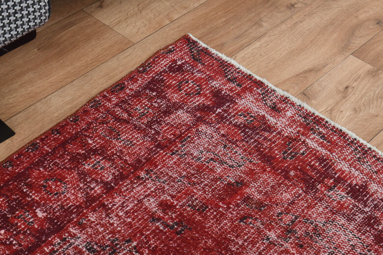 This one-of-a-kind vintage rug is hand-knotted and handwoven in Anatolia, Turkey from a unique wool blend.