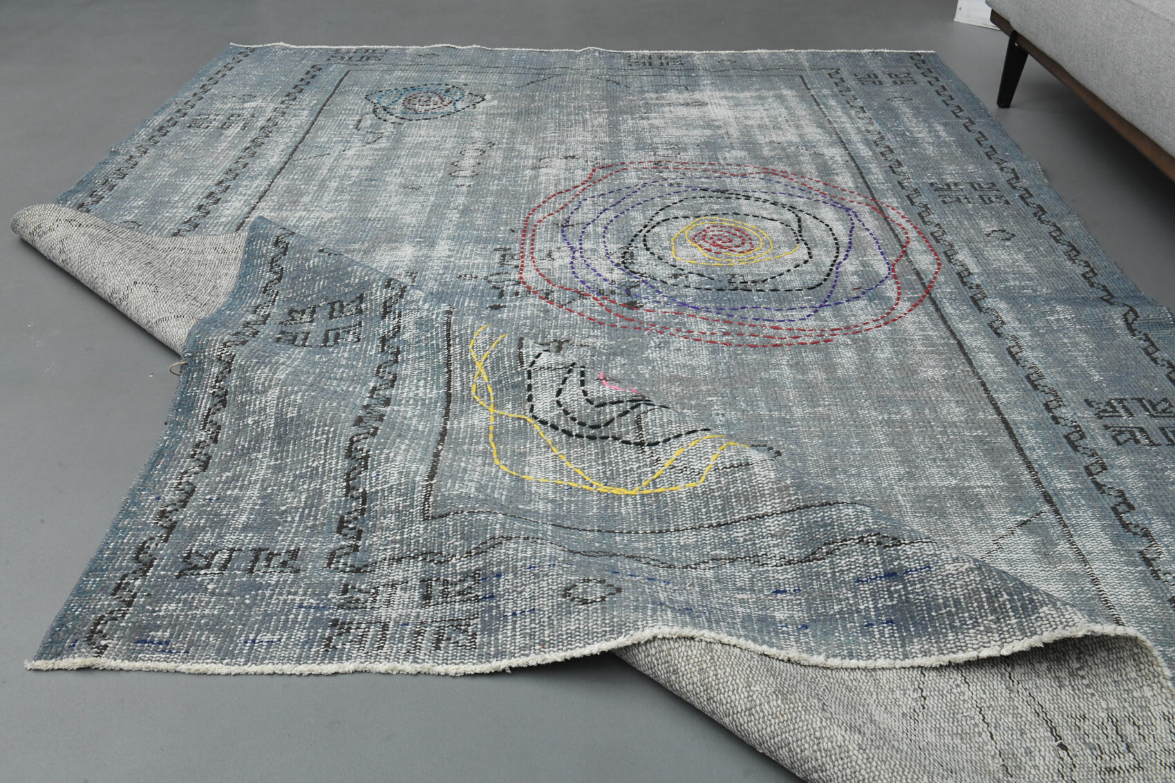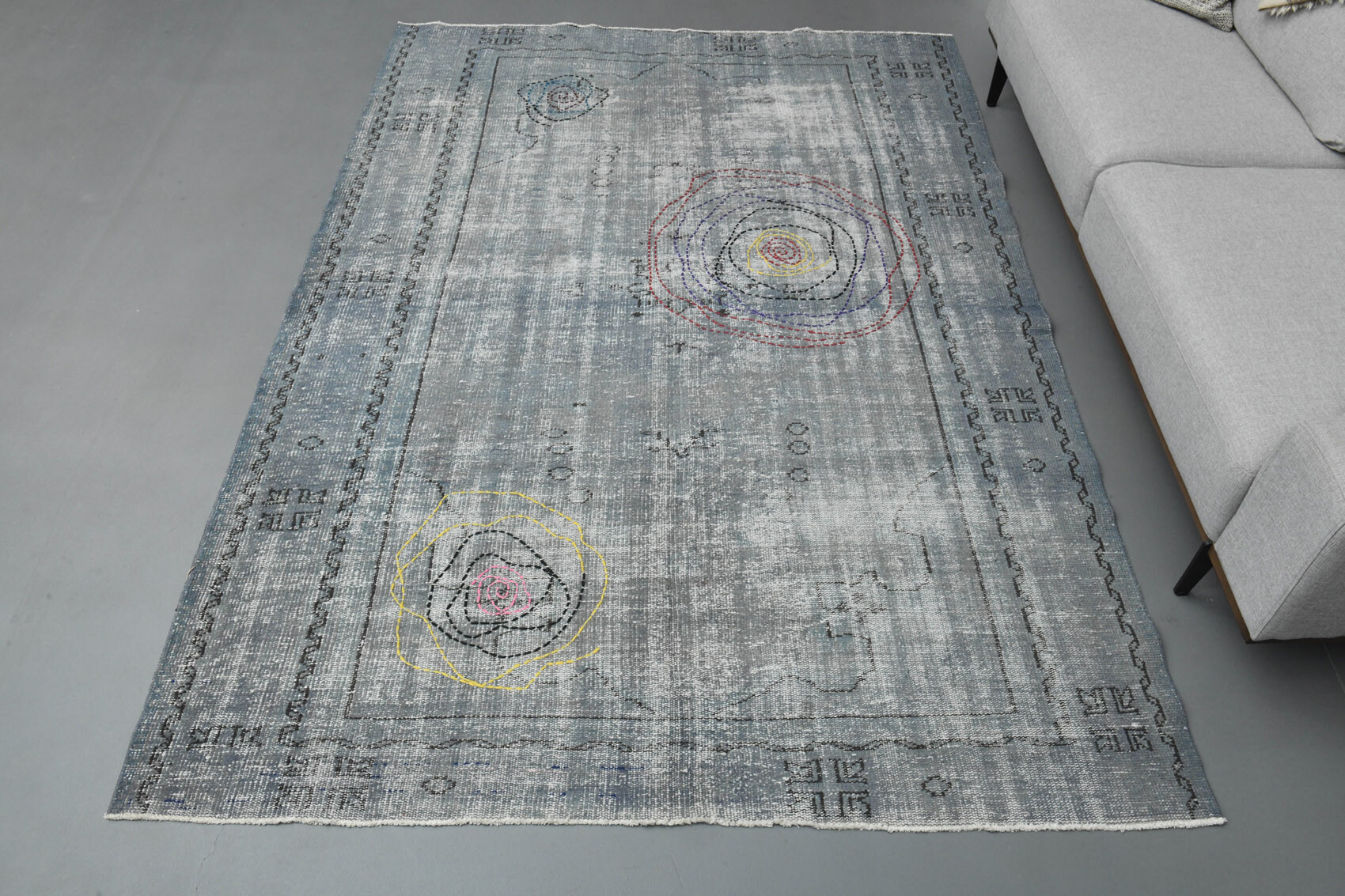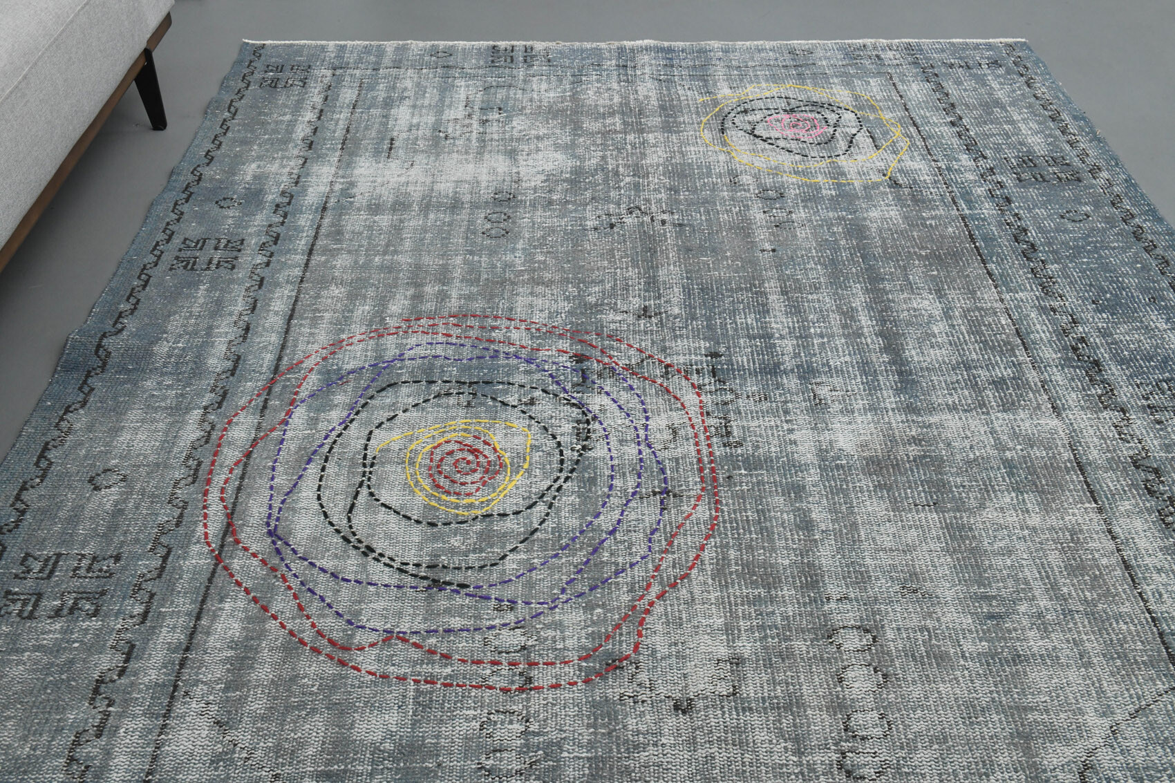 This one-of-a-kind vintage rug is hand-knotted and handwoven in Anatolia, Turkey from a unique wool blend.