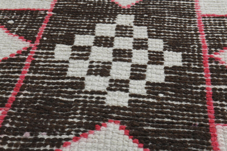 This one-of-a-kind vintage rug is hand-knotted and handwoven in Anatolia, Turkey from a unique wool blend.